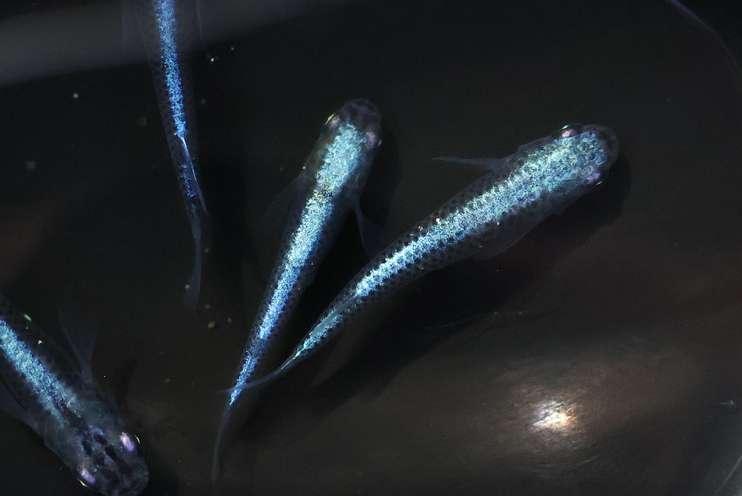 画像の種親から生まれた稚魚になります。大きさは約5mm〜10mmくらいです。たっぷりのゾウリムシで育てました。