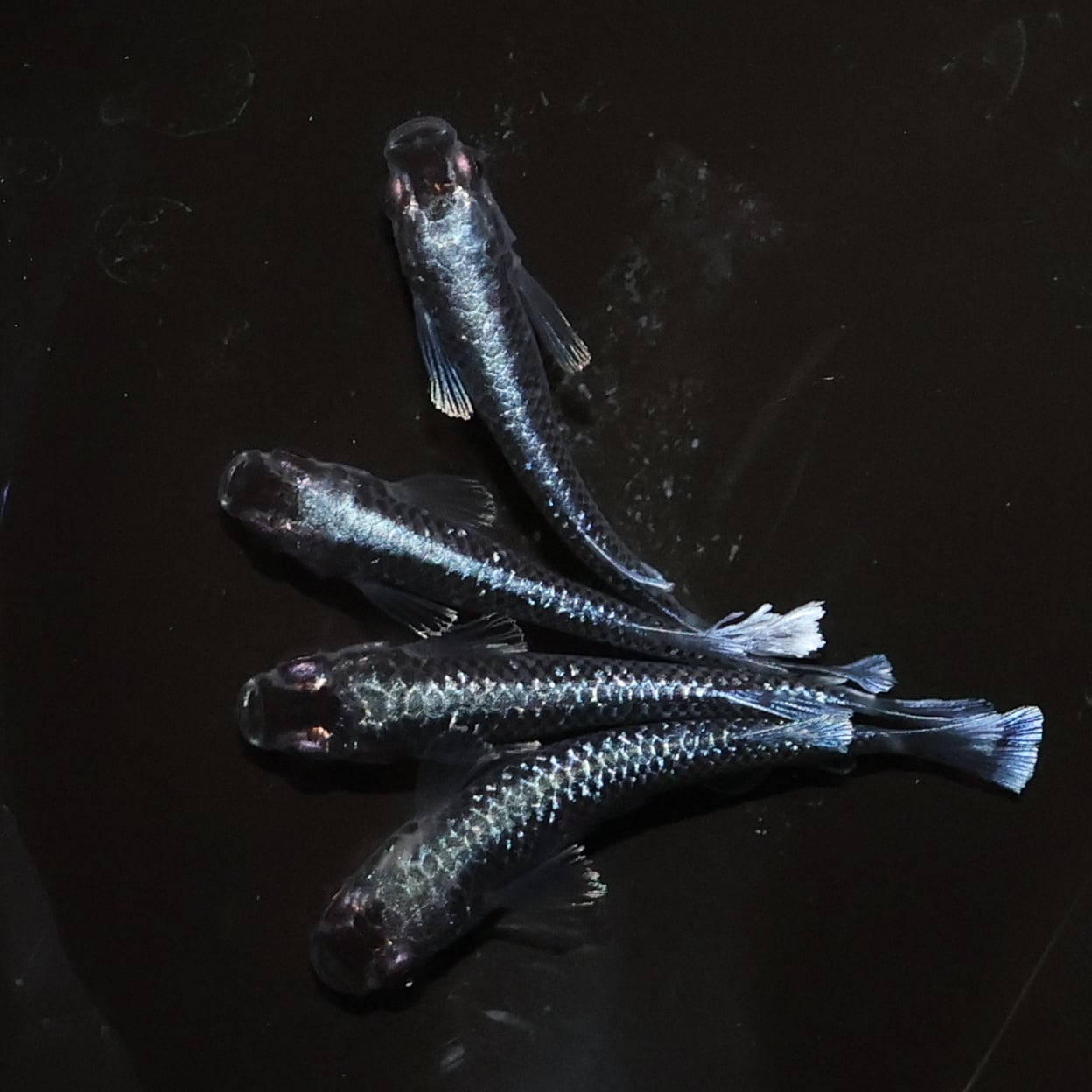 画像の種親から生まれた稚魚になります。大きさは約5mm〜10mmくらいです。たっぷりのゾウリムシで育てました。