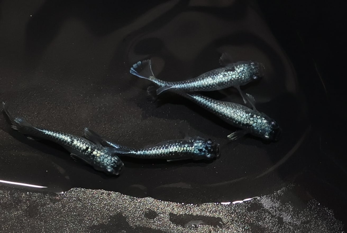 画像の種親から生まれた稚魚になります。大きさは約5mm〜10mmくらいです。たっぷりのゾウリムシで育てました。