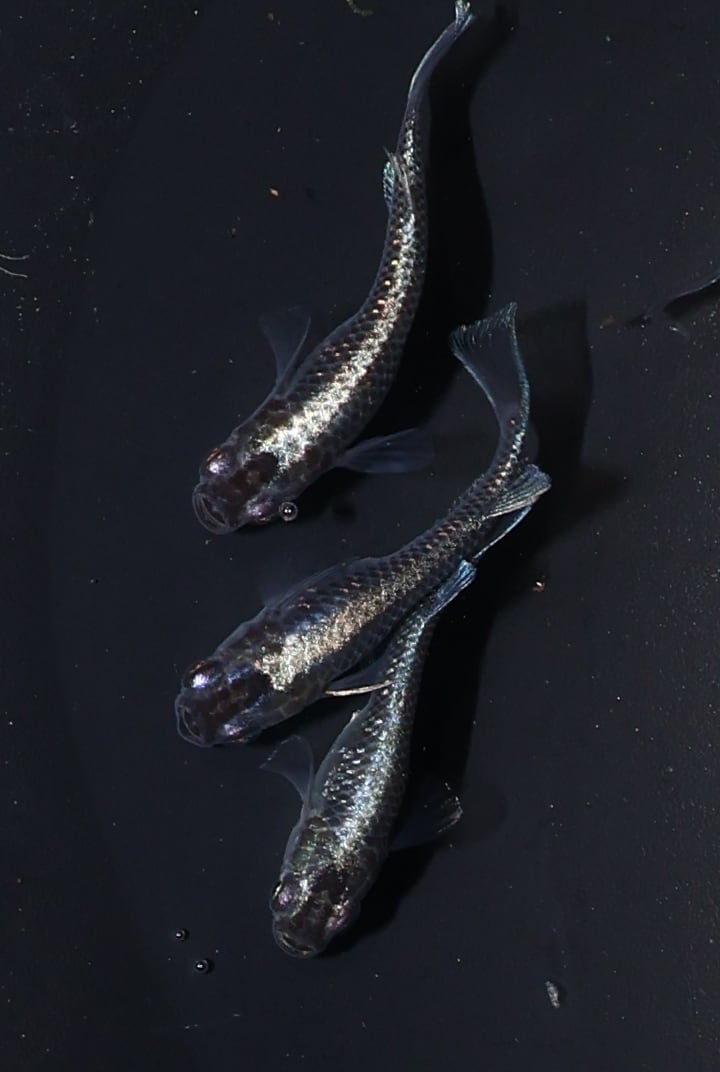ミッドナイトフリル【体外光】夢中メダカ様直系 特上種親の稚魚10匹+α