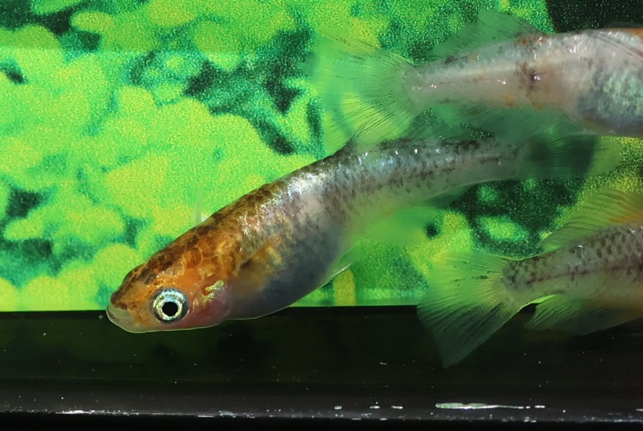 画像の種親から生まれた稚魚になります。大きさは約5mm〜10mmくらいです。たっぷりのゾウリムシで育てました。